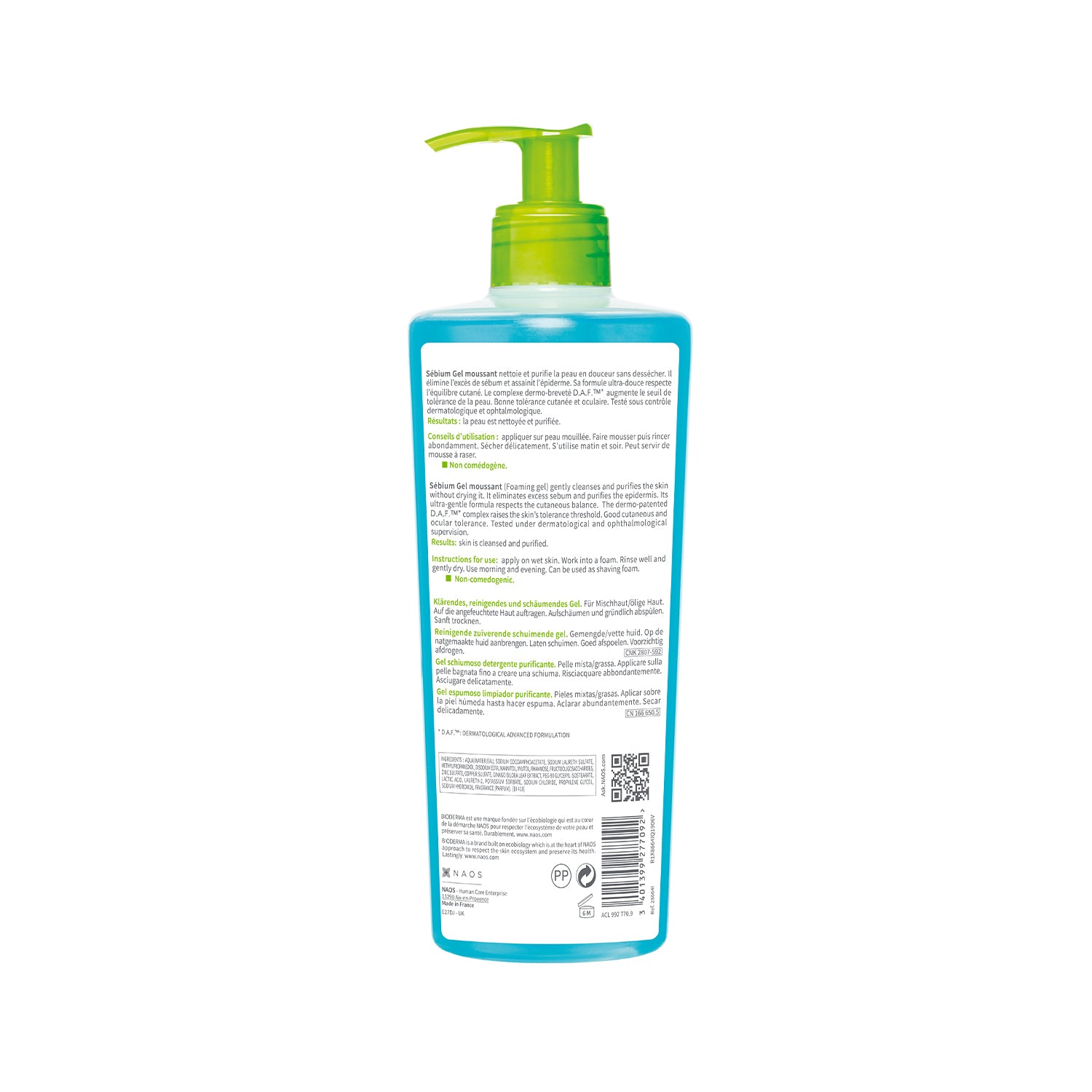 - Apply Bioderma Sebium Moussant Purifying Cleansing Foaming Gel on wet skin, work into a foam, rinse well and gently dry