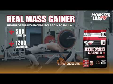 - Helps you build lean muscle: Monster Labs Real Mass Gainer provides you with 50g of pure protein in every serving. It contains a fine blend of premium quality whey proteins that gives you sustained nutrition all day long. As a result, it is easier to have lean muscle built in a short period of time. In addition to this, this mass gainer or mass bulker is low in sugar and fat.